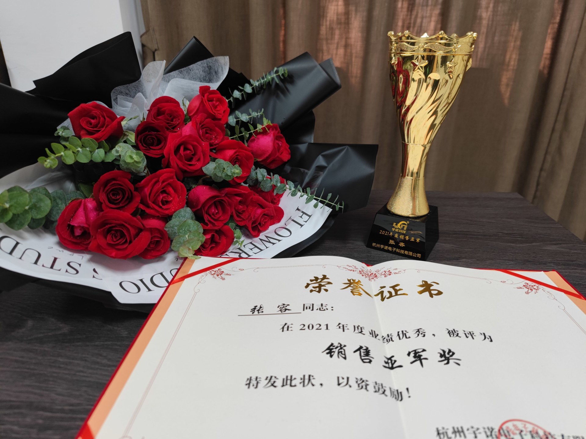 韓德昆董事長(zhǎng)、銷售亞軍張容、市場(chǎng)部總監(jiān)徐濤合影